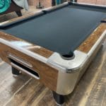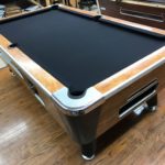 - New Championship Mercury Ultra Black Cloth|New Pocket Liners and Gully Boots|New Locks throughout|New Hardware throughout|New Penguin (Wood and Rubber) rails (Retails $165)|This table has some minor repaired chips and scratches but still looks great|Coin mechanism set for free push