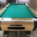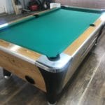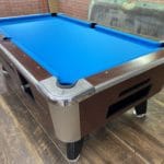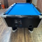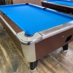 - New Championship Mercury Ultra Electric Blue Cloth|New Locks throughout|This table has some minor repaired chips and scratches but still looks great|Due to an error in the system we are unable to list the table as a 7' Great American. We are working to correct this issue.|New pocket liners and gully boots (retails for $40)|Coin mechanism is set for 4 quarters