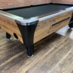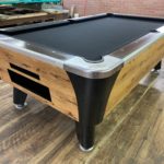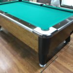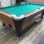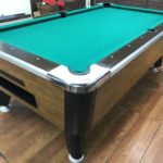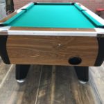 - New Hardware throughout|This table has some minor repaired chips and scratches but still looks great|Like new Championship Mercury Ultra tournament green cloth|New Pocket Liners and Gully Boots (retails for $40)|New locks through out the table (retails for $12)|New Penguin wood and rubber rails (retails for $175)|Coin mechanism is set for free push
