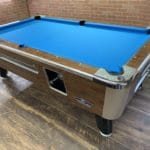 - New Pocket Liners and Gully Boots|New Locks throughout|New Hardware throughout|This table has some minor repaired chips and scratches but still looks great|New Championship Mercury Ultra green (Retails for $100)|New Penguin wood and rubber (Retails for $175)|New Chrome rail trim (retails for $100)|New coin mech door