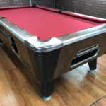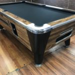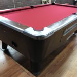 - New Hardware throughout|This table has some minor repaired chips and scratches but still looks great|New Championship Mercury Ultra black cloth (retails for $100)|Gently used responsive Penguin wood and rubber rails|New pocket liners and gully boots (retails for $40)|New locks throughout the table (retails for $12)|Coin mechanism set for free push|New Chrome rail trim (retails for $100)