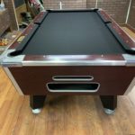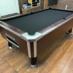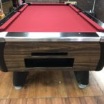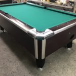 - New Hardware throughout|This table has some minor repaired chips and scratches but still looks great|New Championship Mercury Ultra black cloth (retails for $100)|New pocket liners and gully boots (retails for $40)|New Penguin wood and rubber rails (retails for $175)|New locks throughout table (retails for $12)|Coin mechanism set for free push