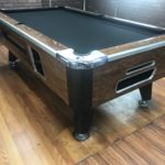 - New Championship Invitational Black Cloth|New Pocket Liners and Gully Boots|New Locks throughout|New Hardware throughout|This table has some minor repaired chips and scratches but still looks great|Coin mechanism set for free push|Very responsive