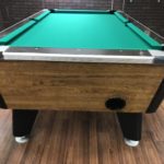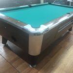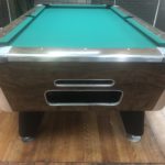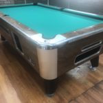 • New Championship Mercury Ultra Tournament Green Cloth|New Pocket Liners and Gully Boots|New Locks throughout|New Hardware throughout|New Penguin (Wood and Rubber) rails (Retails $165)|This table has some minor repaired chips and scratches but still looks great|Coin mechanism set for free push