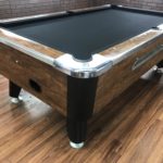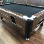 • New Championship Mercury Ultra Black Cloth|New Pocket Liners and Gully Boots|New Locks throughout|New Hardware throughout|New Rail Trim (Retails $90)|New Penguin (Wood and Rubber) rails (Retails $165)|This table has some minor repaired chips and scratches but still looks great|Coin mechanism set for free push