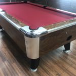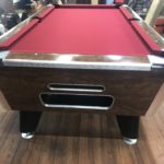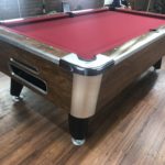 • New Pocket Liners and Gully Boots|New Locks throughout|New Hardware throughout|New Penguin (Wood and Rubber) rails (Retails $165)|This table has some minor repaired chips and scratches but still looks great|New Championship Invitational Burgundy cloth|Coin mechanism set for free push