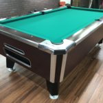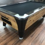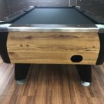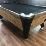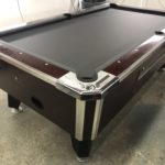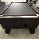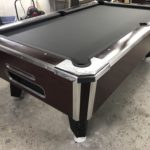 - New Championship Mercury Ultra Black Cloth|New Pocket Liners and Gully Boots|New Locks throughout|New Hardware throughout|New Penguin (Wood and Rubber) rails (Retails $165)|This table has some minor repaired chips and scratches but still looks great|Coin mechanism set for free push|Magnetic cue ball is needed