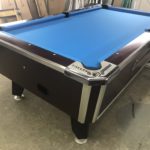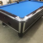 - New Simonis 860HR Tournament Blue Cloth|New Pocket Liners and Gully Boots|New Locks throughout|New Hardware throughout|New Rail Trim (Retails $90)|New Penguin (Wood and Rubber) rails (Retails $165)|New coin mechanism set to receive 4 quarters|This table has some minor repaired chips and scratches but still looks great|Bottom up trim installed