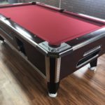 - New Pocket Liners and Gully Boots|New Locks throughout|New Hardware throughout|New Rail Trim (Retails $90)|New Penguin (Wood and Rubber) rails (Retails $165)|This table has some minor repaired chips and scratches but still looks great|New Championship Mercury Ultra Burgundy Cloth|Coin mechanism is set for free push