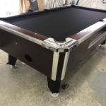 - New Pocket Liners and Gully Boots|New Locks throughout|New Hardware throughout|New Rail Trim (Retails $90)|This table has some minor repaired chips and scratches but still looks great|Coin mechanism set for free push|Responsive after market used rails.|New Championship Mercury Ultra Charcoal Grey Cloth|Bottom up trim installed