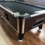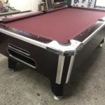 - New Championship Mercury Ultra Black Cloth|New Pocket Liners and Gully Boots|New Locks throughout|New Hardware throughout|New Penguin (Wood and Rubber) rails (Retails $165)|This table has some minor repaired chips and scratches but still looks great|Coin mechanism set to free push|Bottom up trim installed