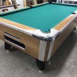 - New Pocket Liners and Gully Boots|New Locks throughout|New Hardware throughout|This table has some minor repaired chips and scratches but still looks great|New Championship Mercury Ultra Tournament Green Cloth (retails for $100)|New coin mechanism set to receive 4 quarters (retails for $50)|New Penguin (Wood and Rubber) rails (Retails $175)