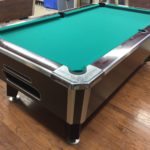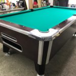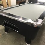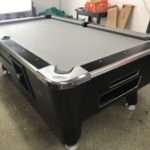 - New Championship Mercury Ultra Black Cloth|New Pocket Liners and Gully Boots|New Locks throughout|New Hardware throughout|This table has some minor repaired chips and scratches but still looks great|New Penguin (Wood and Rubber) rails (Retails $175)|Coin Mechanism is set for free push