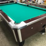 - New Championship Mercury Ultra Tournament Green Cloth|New Pocket Liners and Gully Boots|New Locks throughout|New Hardware throughout|New Rail Trim (Retails $90)|New coin mechanism set to receive 4 quarters|This table has some minor repaired chips and scratches but still looks great|Gently used Penguin rails
